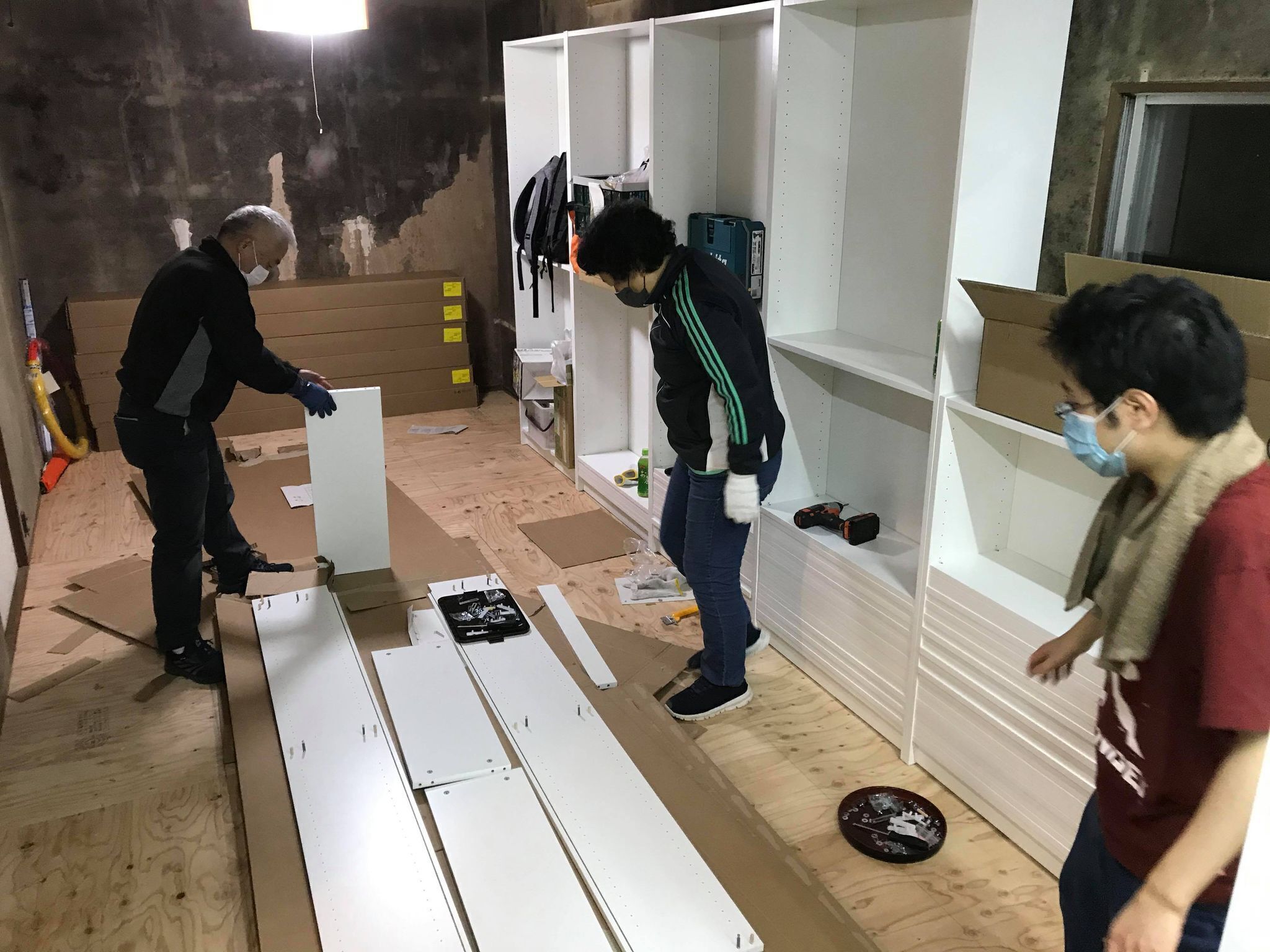 本棚を約30個組み立てていきます