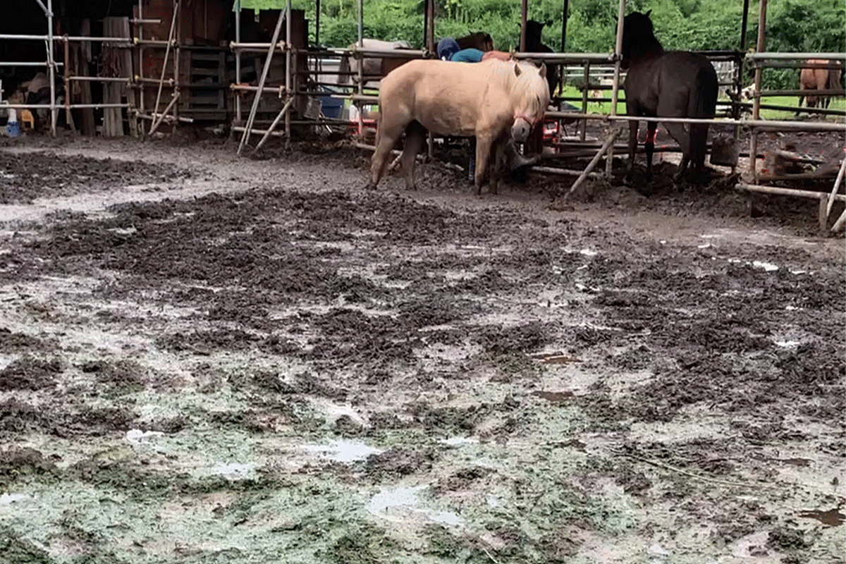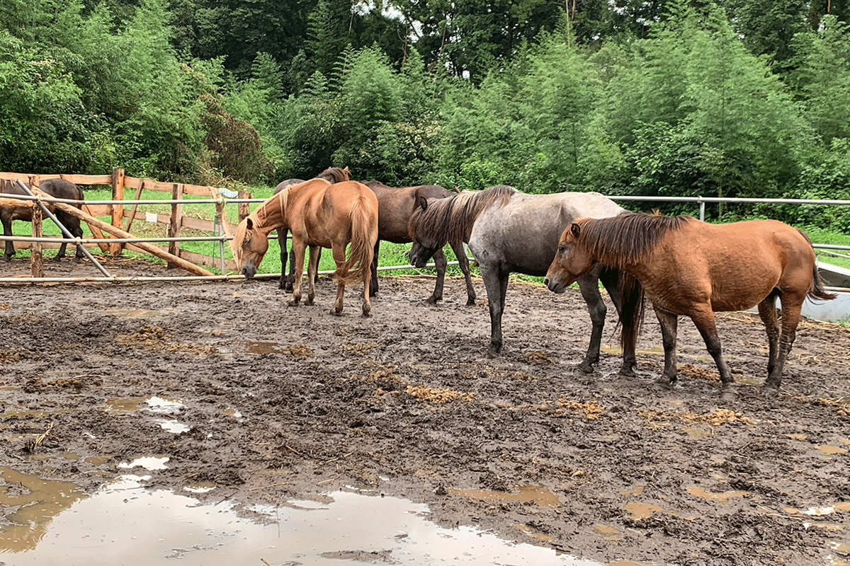 しかし、コロナ禍の影響により、神社等で実施する流鏑馬の活動が全て中止になり収入が絶たれ、現在、流鏑馬において必須のパートナーである馬たちの住む牧場の維持・管理をする上での資金が不足しています。その上、今年の梅雨や台風が多く発生した時期には、牧場内が沼地状態となってしまい、馬の蹄が腐食しかけてしまうなどの問題が発生しました。