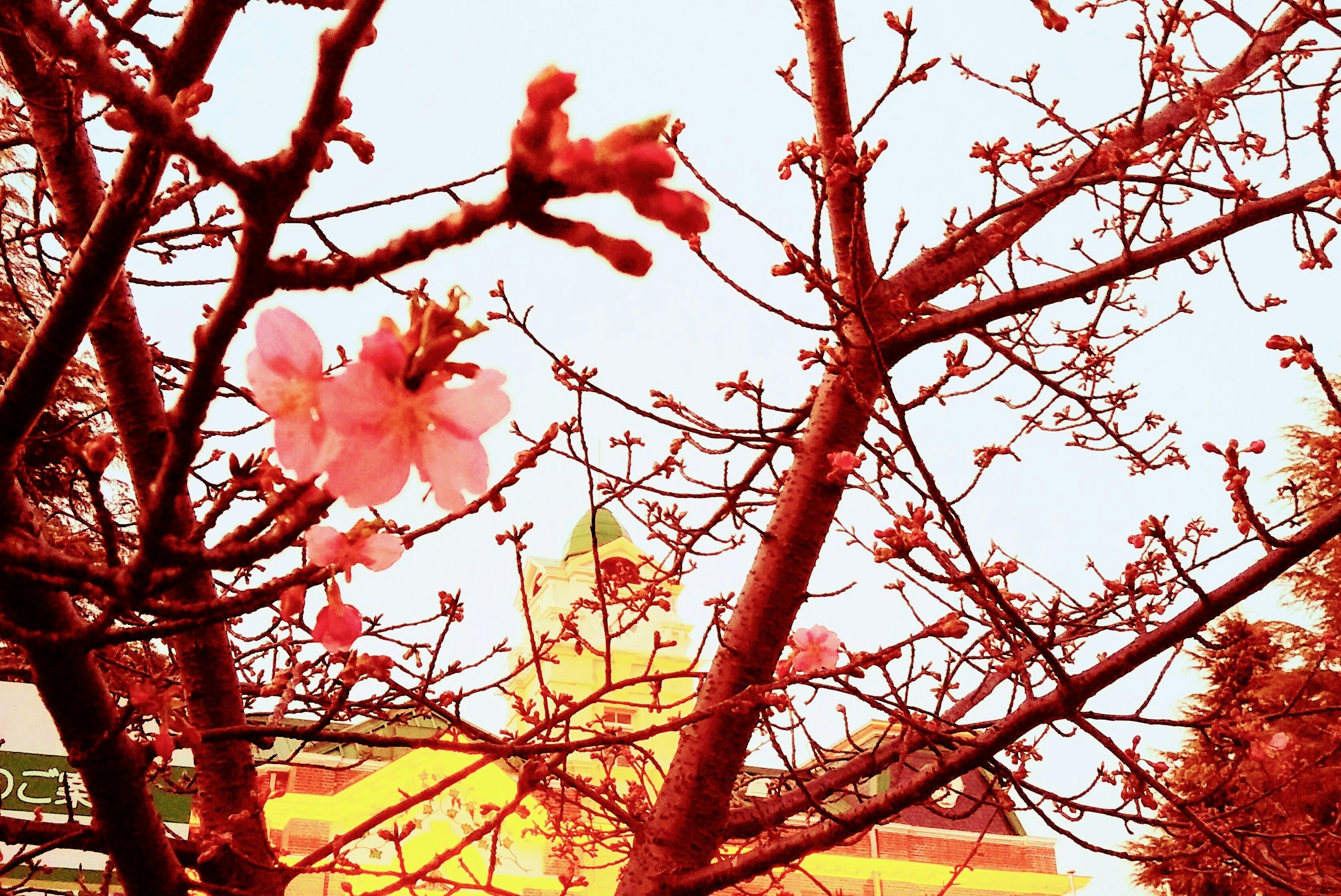 牛久シャトーにいち早く春を告げる正門前の「河津桜」も多くの花を咲かせ始めました。