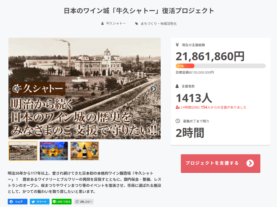 日本最古の本格ワイナリーと、茨城県内初のブルワリーを復活させて、茨城の魅力をもう一度蘇らせるためのプロジェクトに本当に多くの皆さんのご支援をいただき、心より感謝申し上げます。