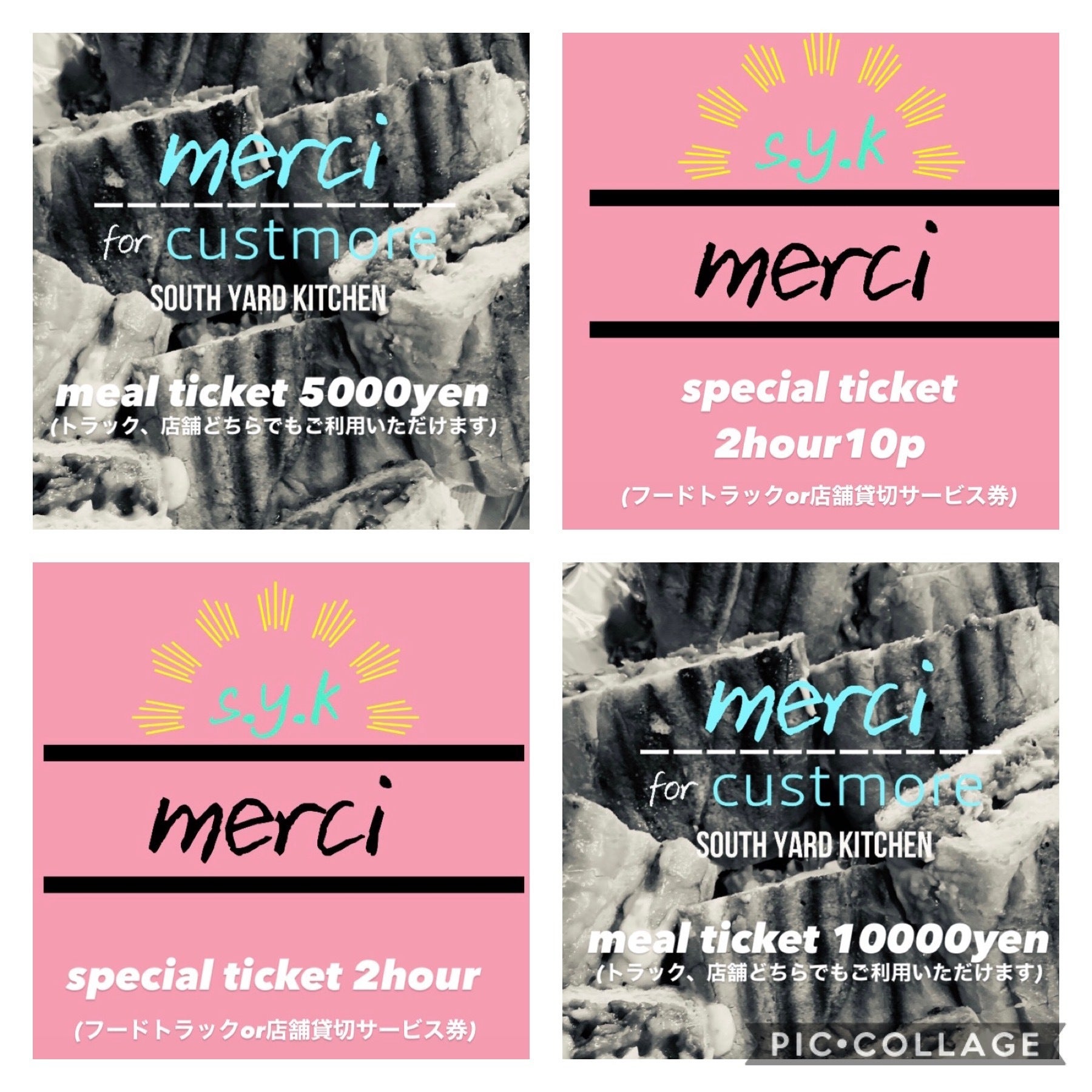 フードトラック、店舗でご利用いただける貸切券。