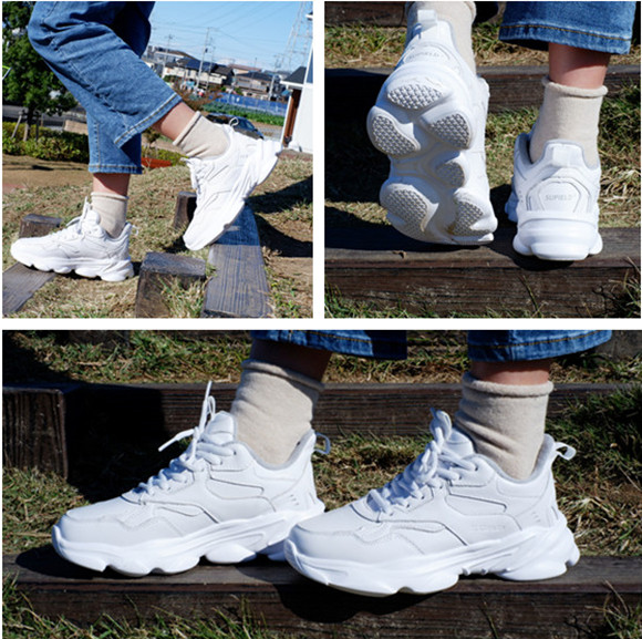 ●凹凸アウトソールで滑りを防止、着地時の衝撃を吸収し膝の負担を減らす