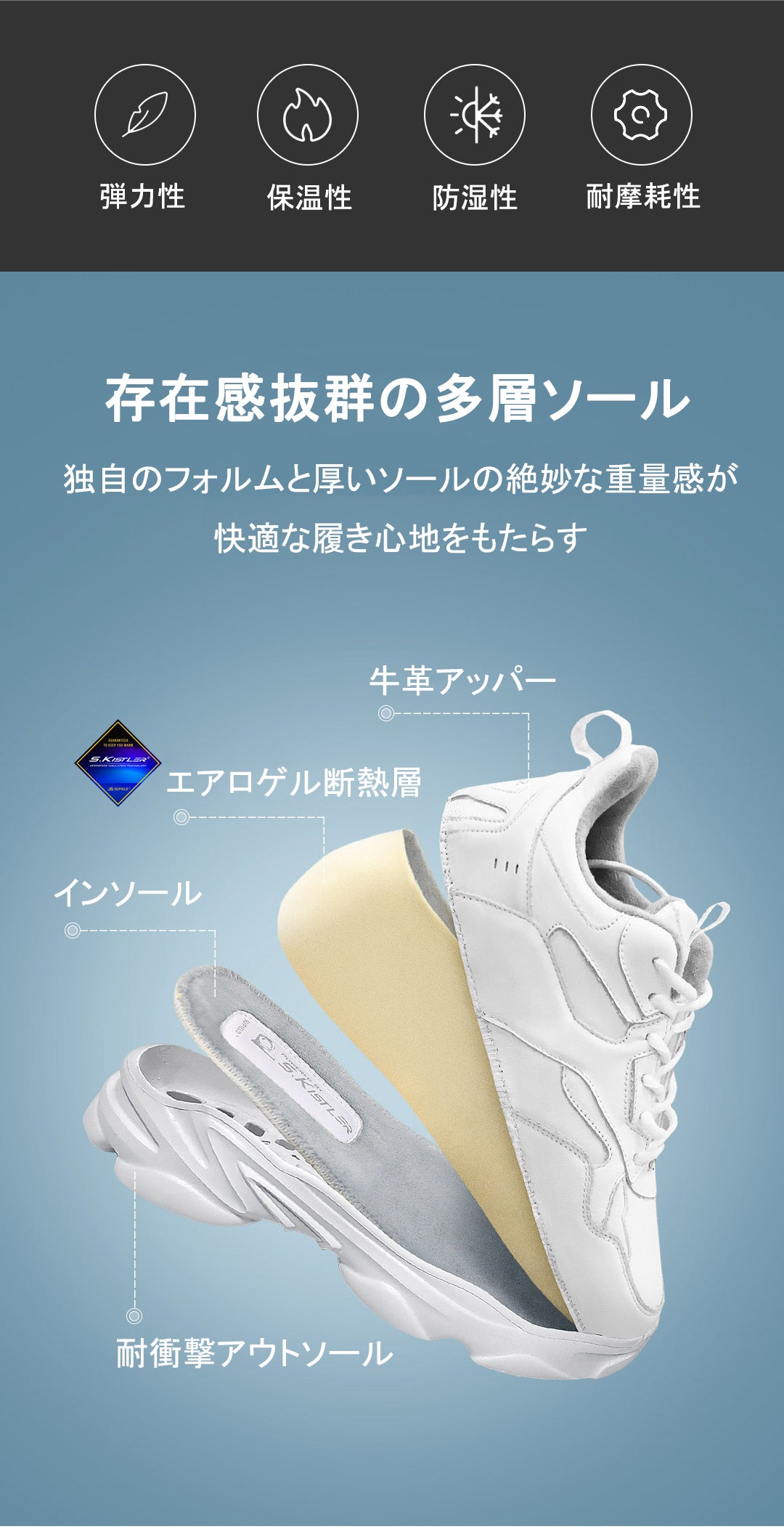 ●ボトム部分には、断熱性が高いエアロゲルのフッドベッドを採用