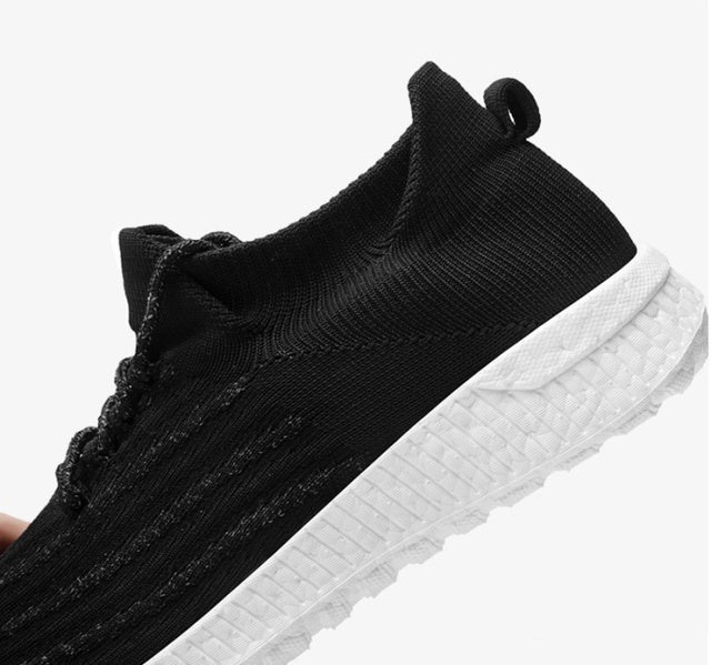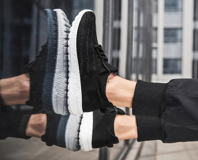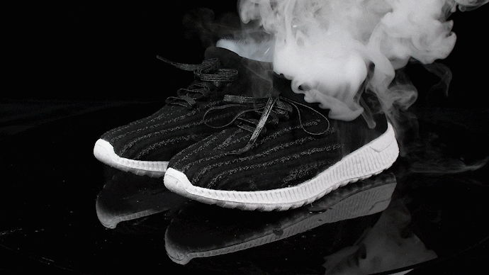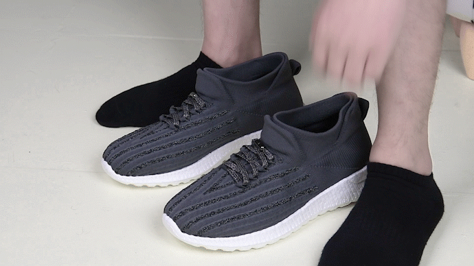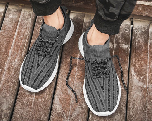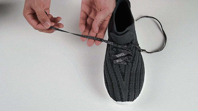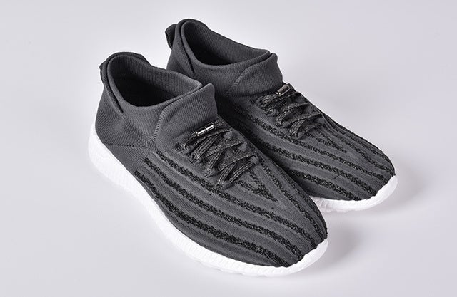 「フライメッシュ」部分は継ぎ目のないシームレスデザイン、靴紐は結ばないタイプ。
