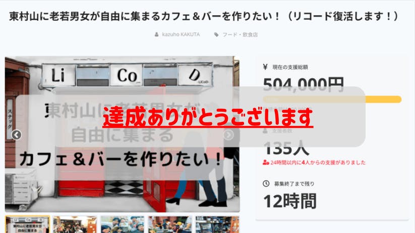 こんな中でも応援いただいた135名の方々には感謝しかありません。ここからできることをやっていきます。