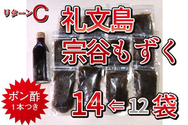 礼文島産手摘み宗谷もずく 1袋 100g×12袋⇒14袋&おいしいポン酢1点
