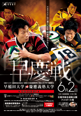 6月石巻ライノス松戸ラグビースクール交流試合告知(早慶戦前座)