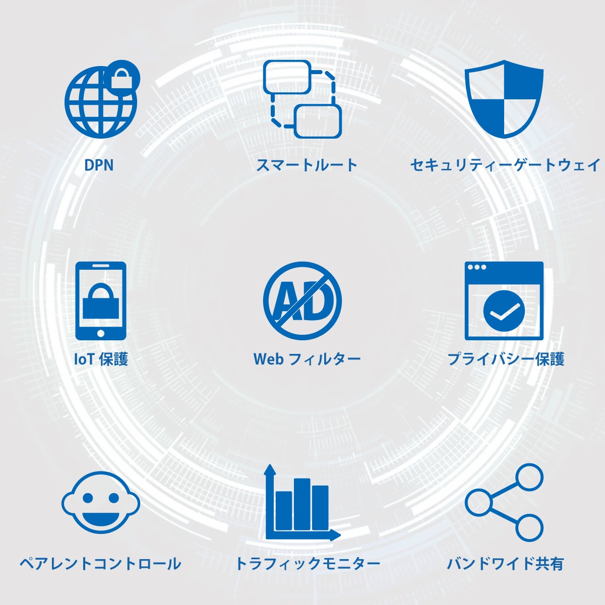 これ1台でVPN機能、ファイアウォール機能、Webフィルタとペアレントコントロール機能などを備えた次世代デバイスです。
