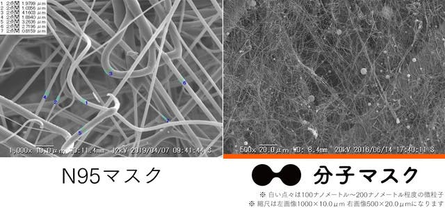 その名の通り、分子の力で100nmの微粒子を99.9%キャッチ。それにより、空気中のウイルスを確実に防ぎます!