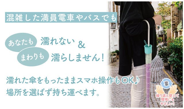 また、傘がきれいにケースに入るため、水濡れを気にする必要がありません!