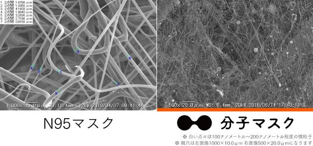その名の通り、分子の力で100nmの微粒子を99.9%キャッチ。それにより、空気中のウイルスを確実に防ぎます!
