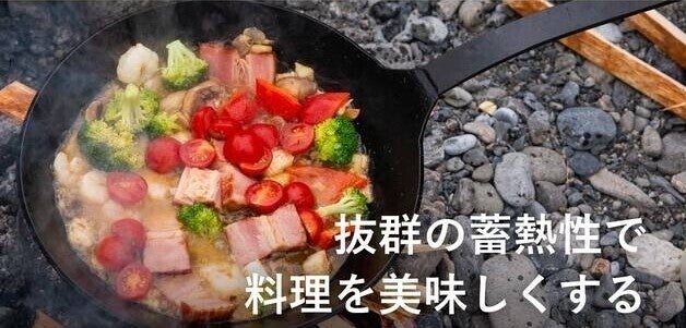 また、伝統の鍛造技術でつくられており、頑丈で壊れにくいデザインとなっています。お肉はもちろん、底が深いので汁物の調理も可能。アウトドア・キャンプはこれ1本でOKです!