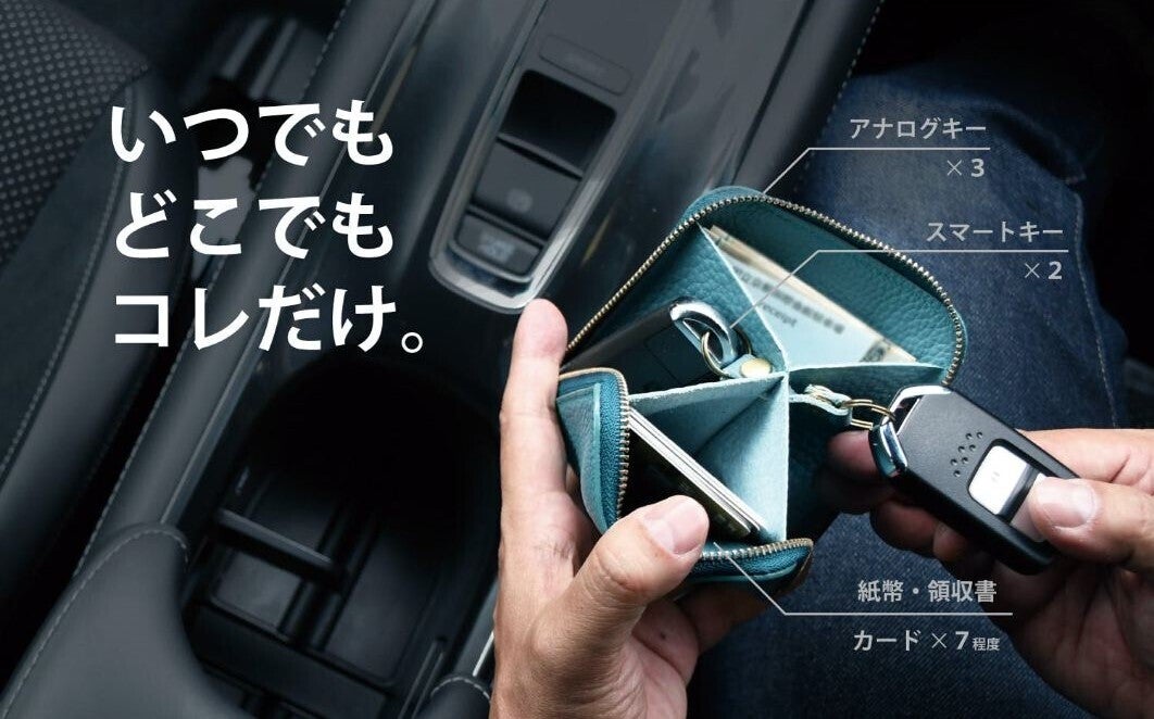 移動に持ち歩くものをスッキリコンパクトに格納し、移動を快適に、スマートに。クルマのキーだけではなく、玄関ドアキー、ガレージキー、エンジンスターター等も格納可能です。
