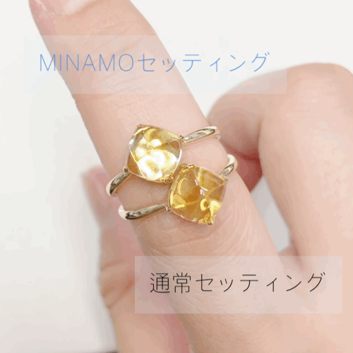 そんな“MINAMO - Sugar -” の一番の特徴は、この独特の煌めきです。まるで水を閉じ込めたように、カラーストーンが内側からきらめきます。
