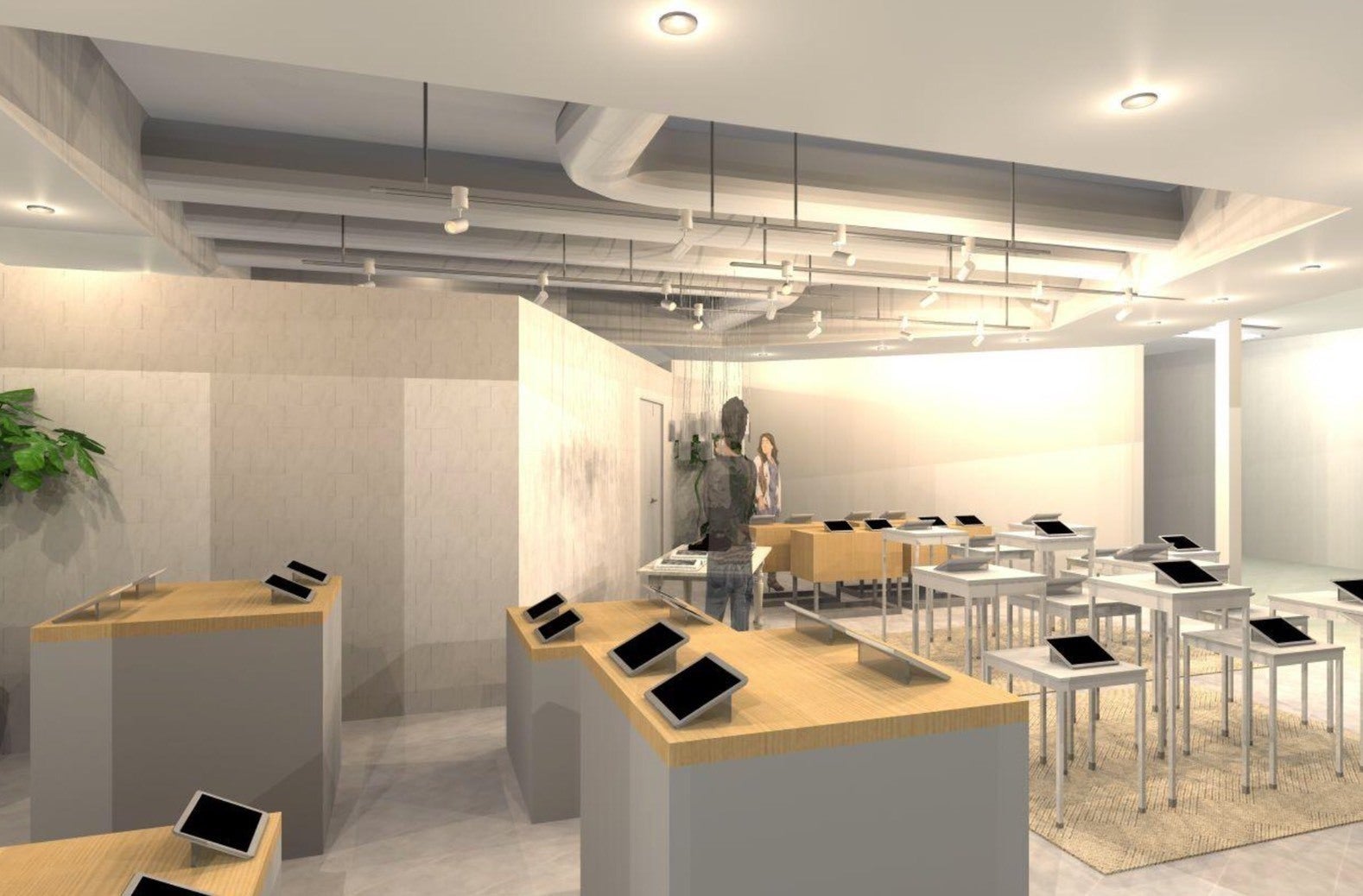 まずは遠くからの眺めです。心地よくストアで体験していただくため、落ち着いたインテリアで統一しています。