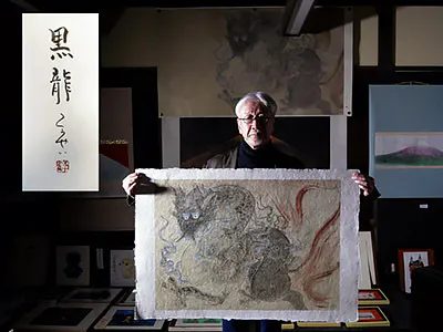 『「白龍」「黒龍」「赤富士」手漉き和紙レプリカ 作者サイン入り』