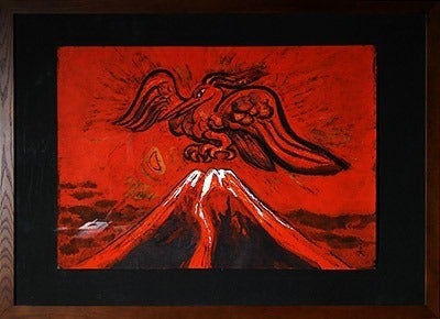 ⑤「朱雀と赤富士」原画 額入り ¥500,000-