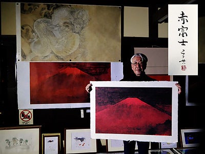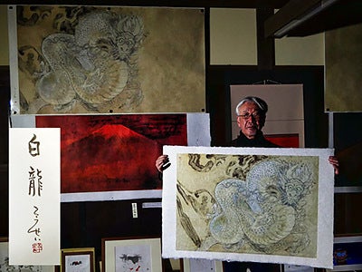 ③「白龍」「黒龍」「赤富士」手漉き和紙レプリカ 作者サイン入り 各¥35,000-