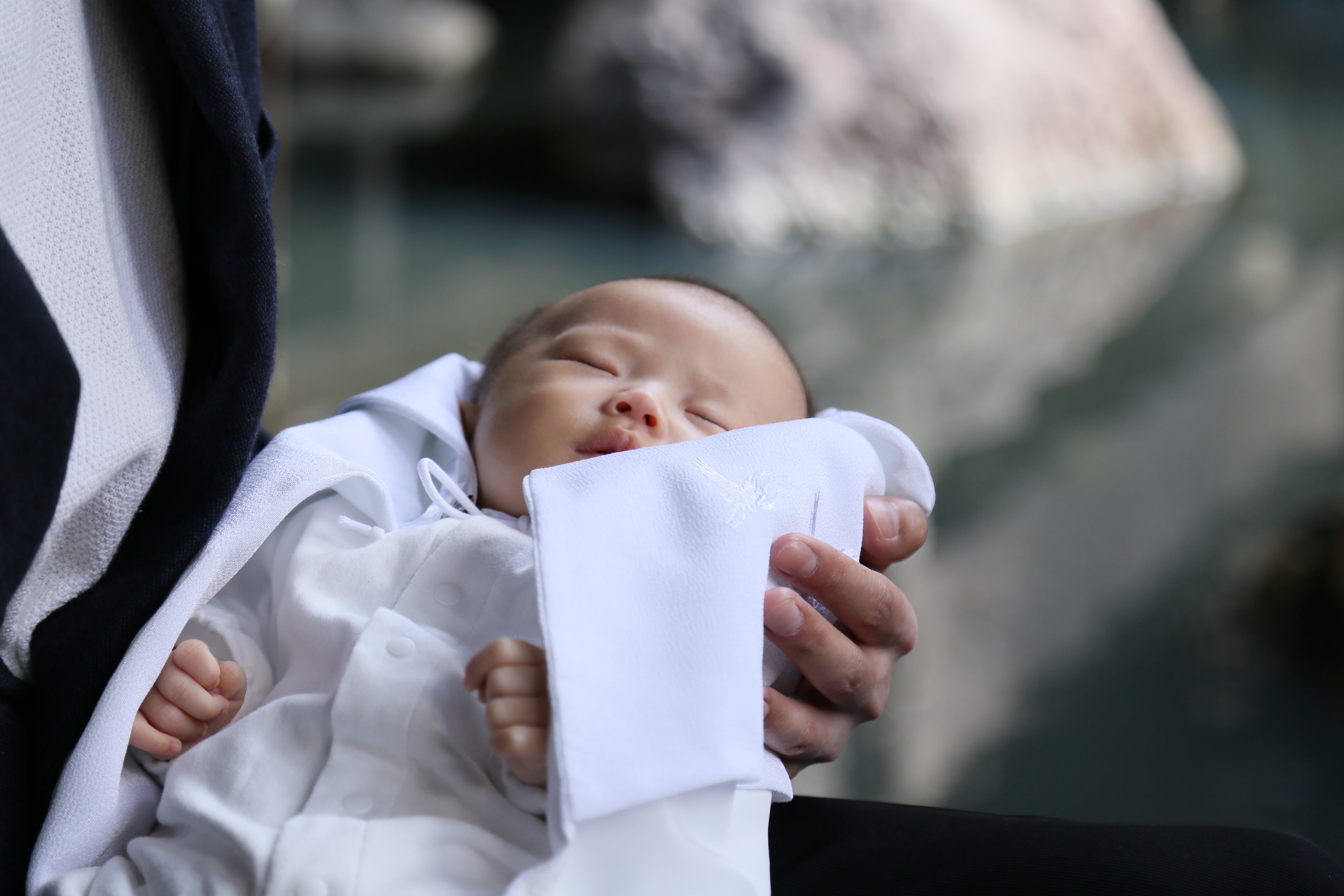 また、綿帽子の頭頂部を折ってクリップで止め、赤ちゃんの初参りに着せれば、母が娘にそして孫にと絆で結ばれる結婚記念品が誕生すると考えたのが始まりです。