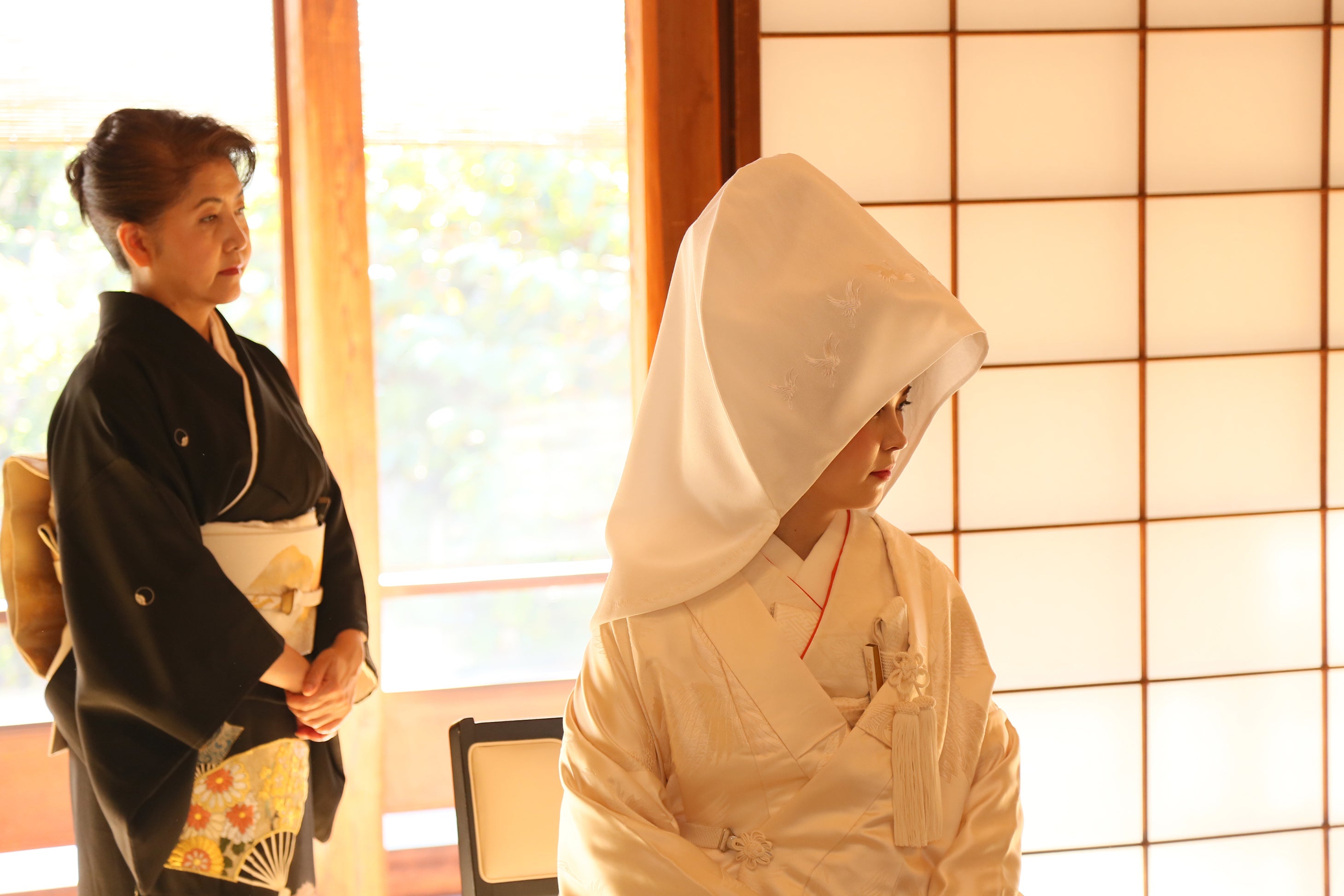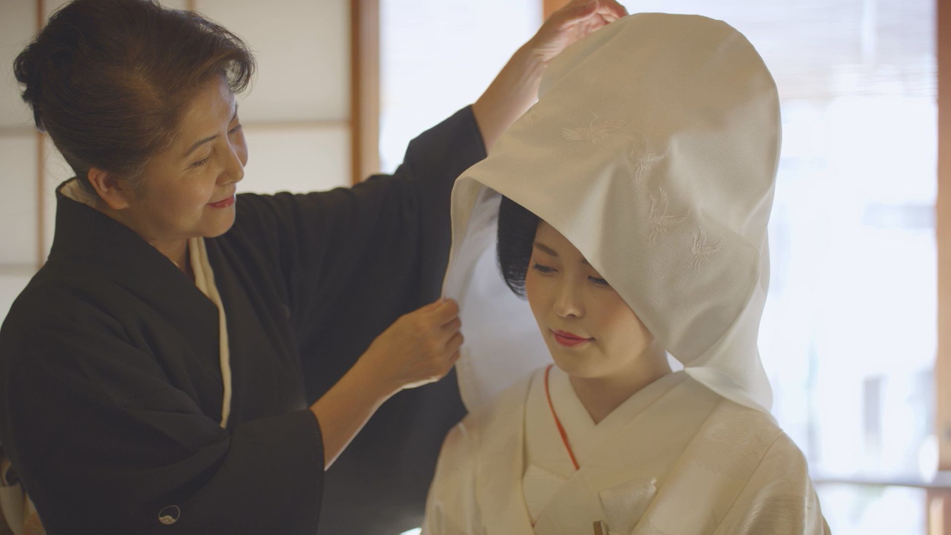 結婚式の進行の中で親族紹介の時に花嫁は綿帽子を付けずに、親族の前に進みそこで母が娘に綿帽子を被せる演出は、思い出に残る一コマです。