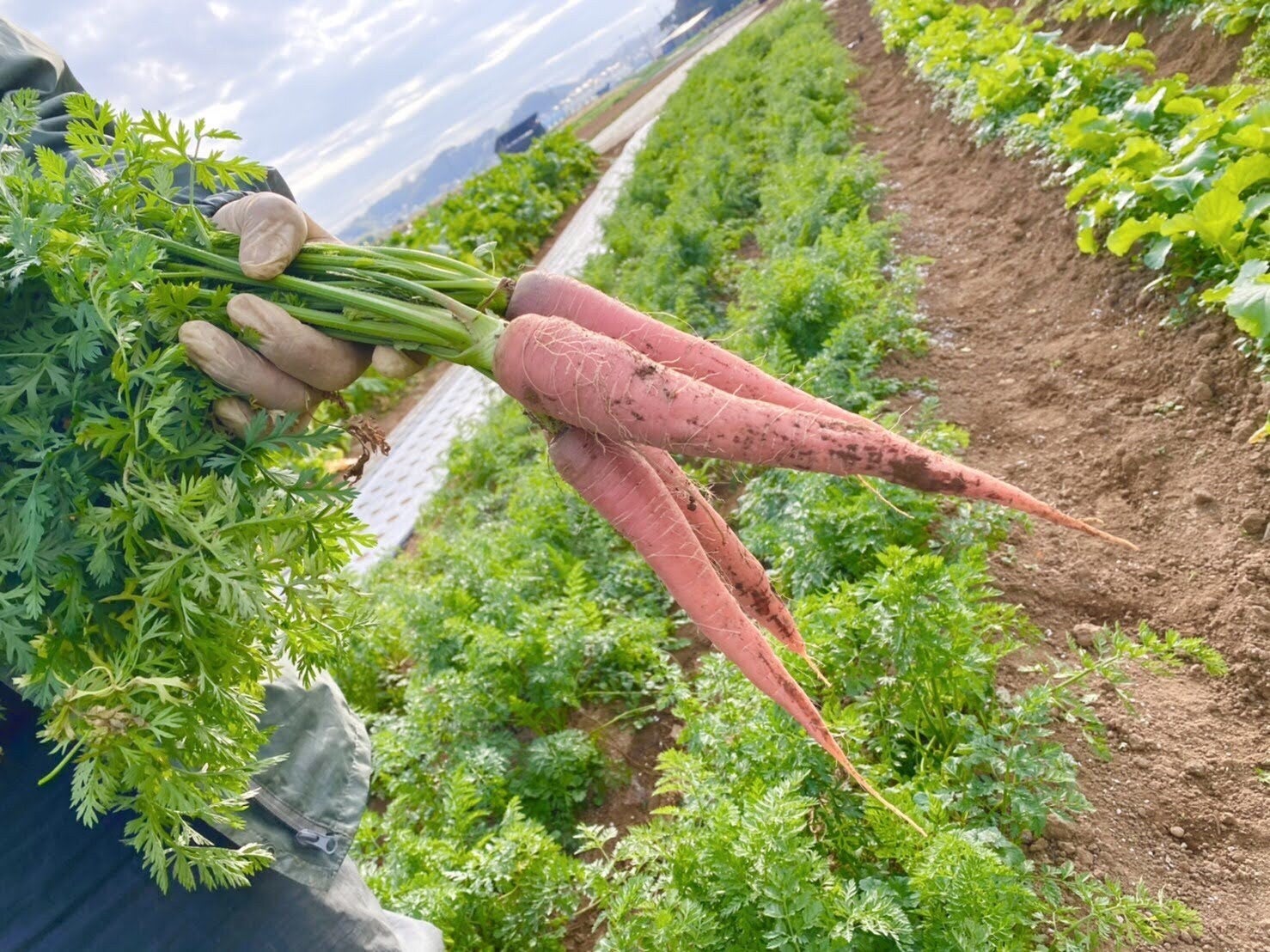 2020/12/14 10:49野菜の名前:くれない人参特徴:鮮やかな赤色が映える人参です。機能性成分である金時人参のリコピンと西洋人参に含まれるカロテンを両方バランスよく備えた人参です。肉質は緻密で、にんじん臭が少なく、生でも甘味を感じます。ジューサーで搾って、人参ジュースとして飲んだり、加熱しても人参の甘味が強く伝わるので、幅広く利用できます。野菜の名前:カーボロネロ(黒キャベツ)特徴:日本でお馴染みのキャベツと形が違う、葉キャベツの仲間です。青汁で知られるケールの仲間にあたり、高い抗酸化力とビタミンCが豊富。葉が、上に向かって広がる様に成長するので、畑はちょっと異様な景色になります!イタリアのトスカーナ地方が原産で、繊維質で煮崩れしにくく、ロールキャベツに向いています。炒めても甘味が増して美味しいです。 野菜の名前: カーリーケール特徴: ケールは、地中海沿岸原産のアブラナ科の野菜。栄養価の高い非結球キャベツで、ビタミンの含有量は緑黄色野菜の中でも多く、青汁の原料としても知られています。特にビタミンAはニンジンの2倍、カルシウムは牛乳の2倍以上含み、そのほか食物繊維や抗酸化物質であるルティンなども豊富で、動脈硬化や心筋梗塞などの生活習慣病の予防に役立つと考えられています。中でもカーリーケールは、葉のふちが細かく縮れた状態になるケールで、葉も柔らかくボリューム感が出る野菜です。他のケールでよく聞かれる苦みやエグミが殆ど無い為、生のままで美味しく召し上がることが出来ます。 もっと見る