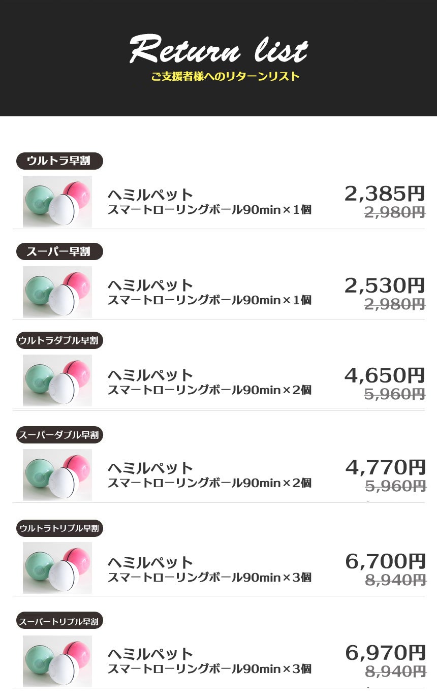 ◯ 商品の販売価格・役務の対価:各リターン記載のとおり