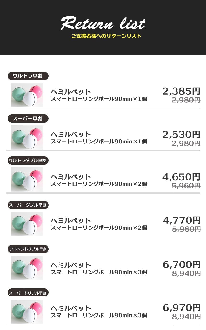 ◯ 対価以外に必要な費用:プロジェクトページ、リターンに記載のとおり