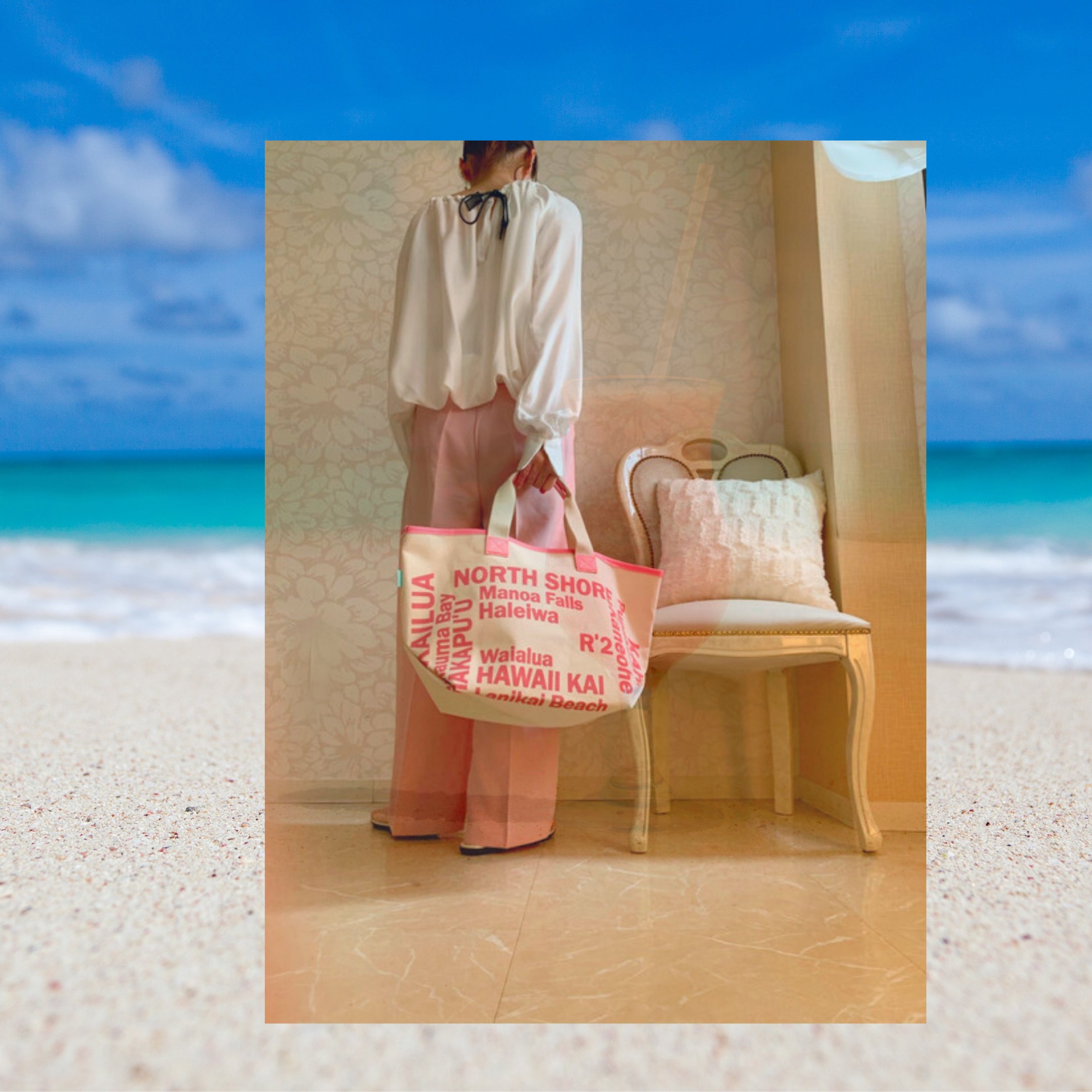 ★「キャンバスバッグ」誰からも愛される桜ピンク♡ハワイ人気スポットロゴ入り