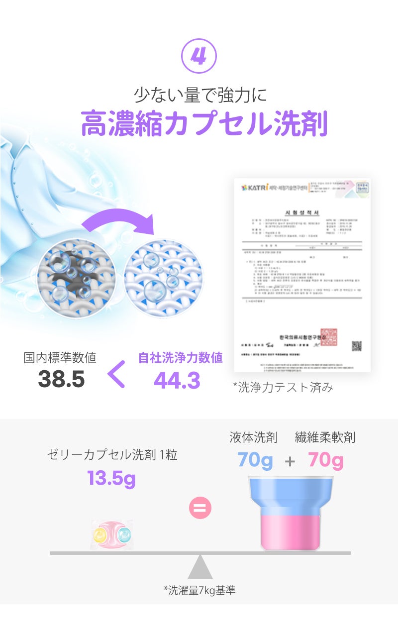 ゼリーカプセル洗剤は高濃縮洗剤として、13.5gのカプセル1粒で十分です。