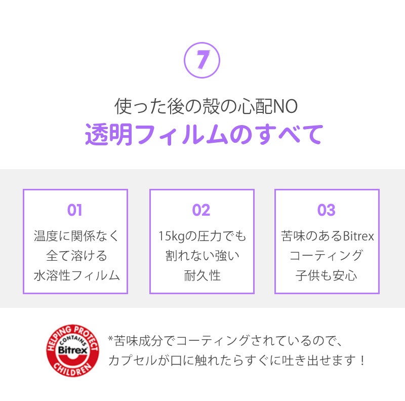 水溶性フィルムなので、使った後の残存物の心配もございません。