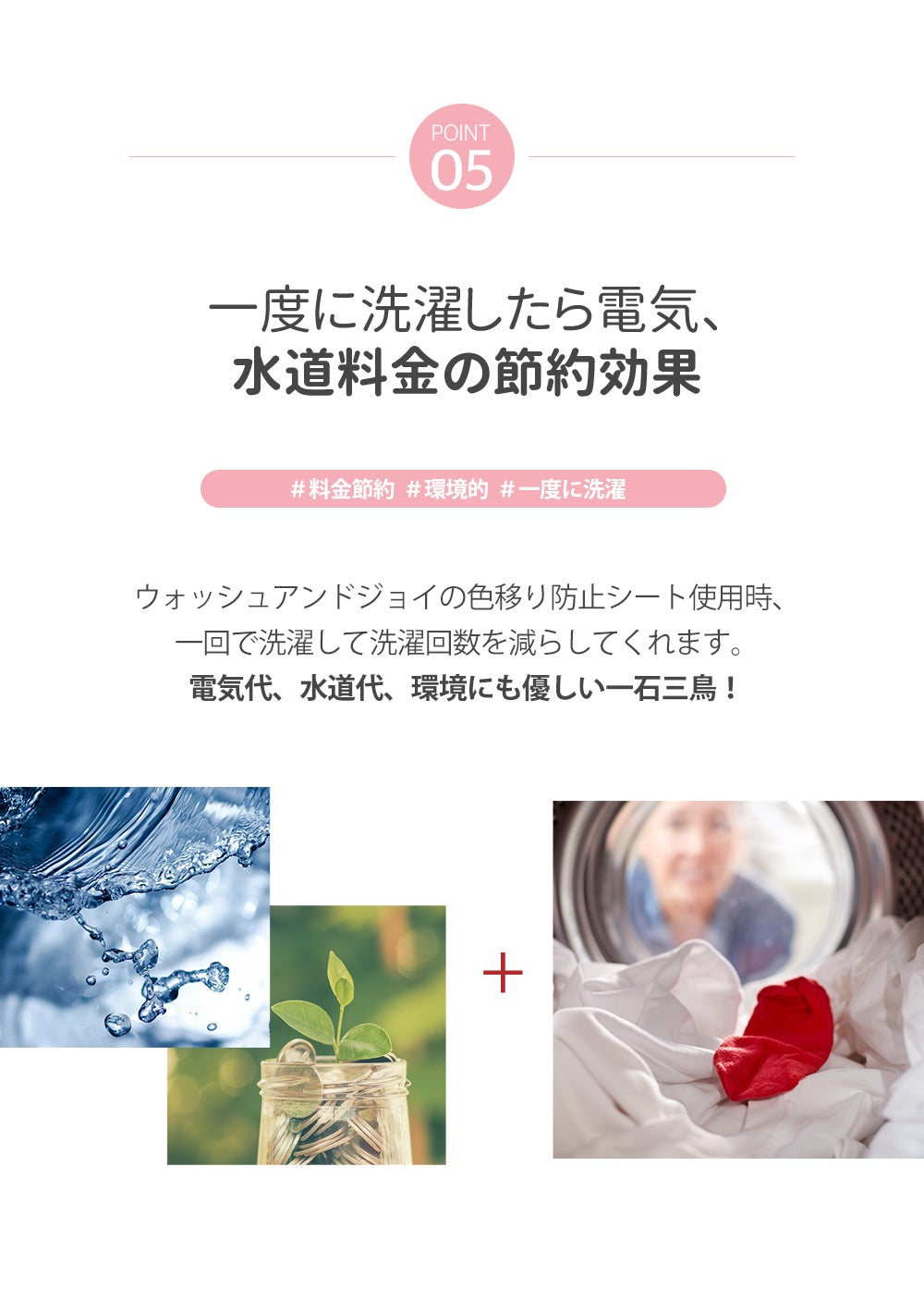 色々な洗濯物を別々に洗濯する必要がないので、水も電気も節約できます。