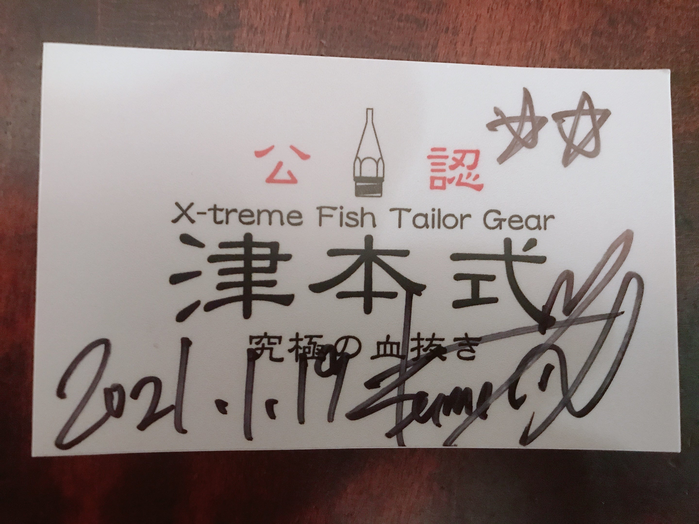 津本さんの直筆サインステッカーにて認定の証となる。⭐︎2つは公認店舗。