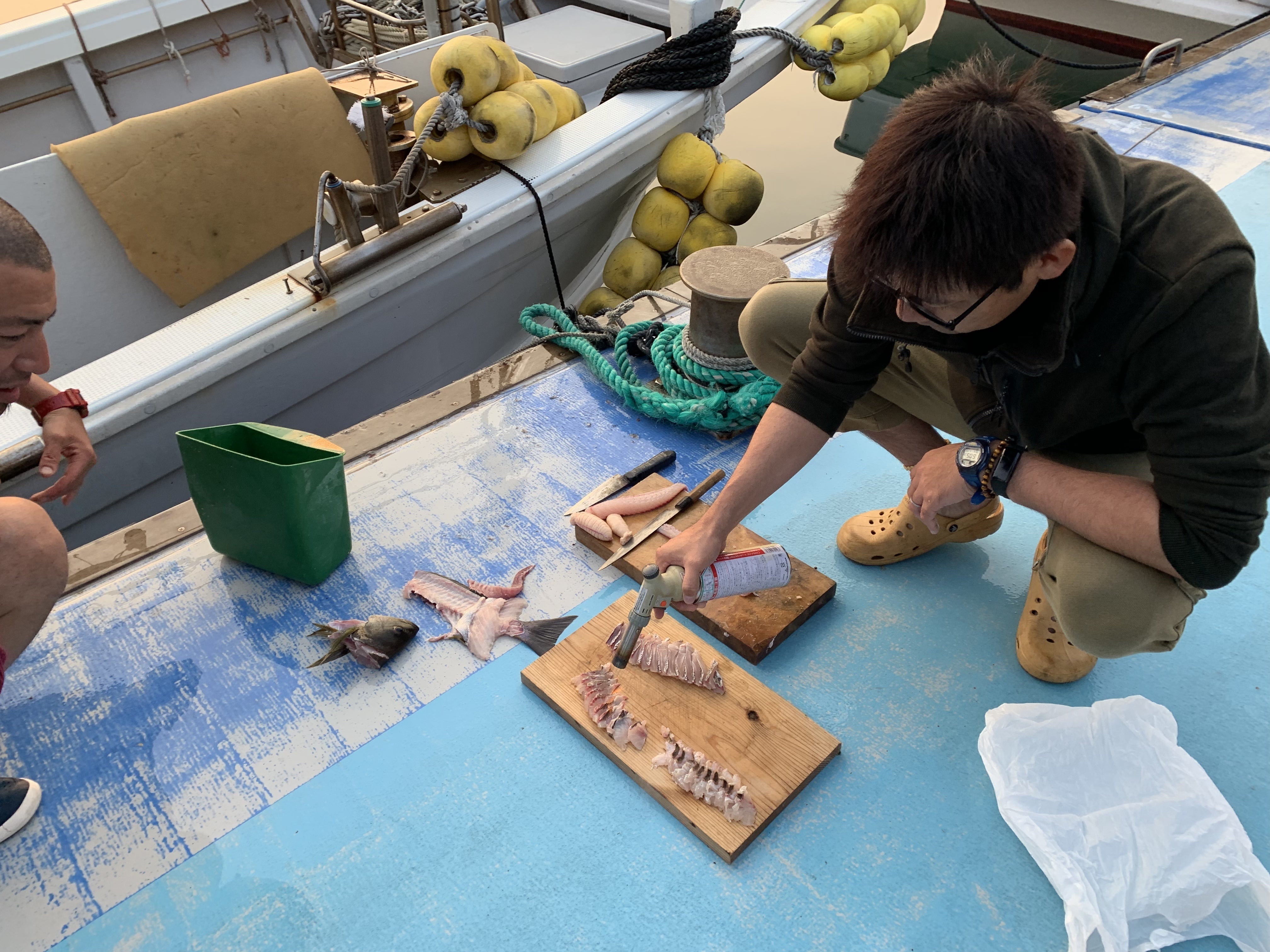 その衝撃は店のスタッフにも伝染し、スタッフ総出で小値賀島に足を運んでは漁師さん方にお話を聞き、船に乗せてもらい、島の代表的な魚『値賀咲(チカサキ)』漁の手伝いをしているうちに、