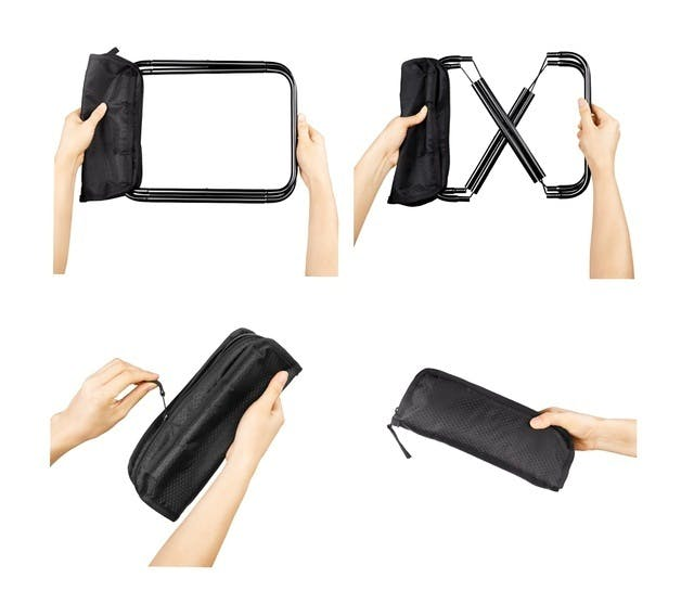収納ポーチが座面になっており袋から取り出したり、袋にしまったりする必要がなくたった3秒で設置可能。
