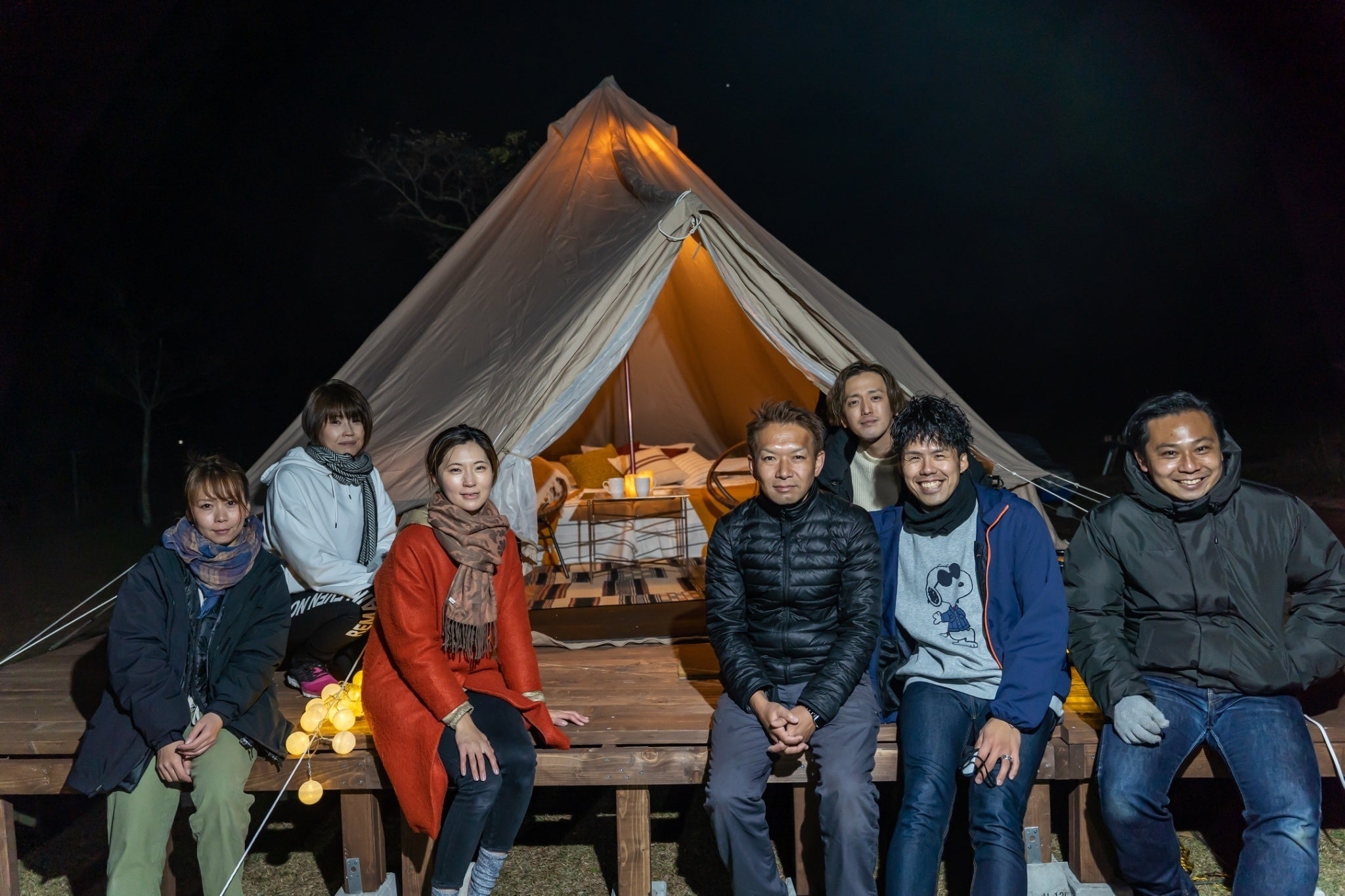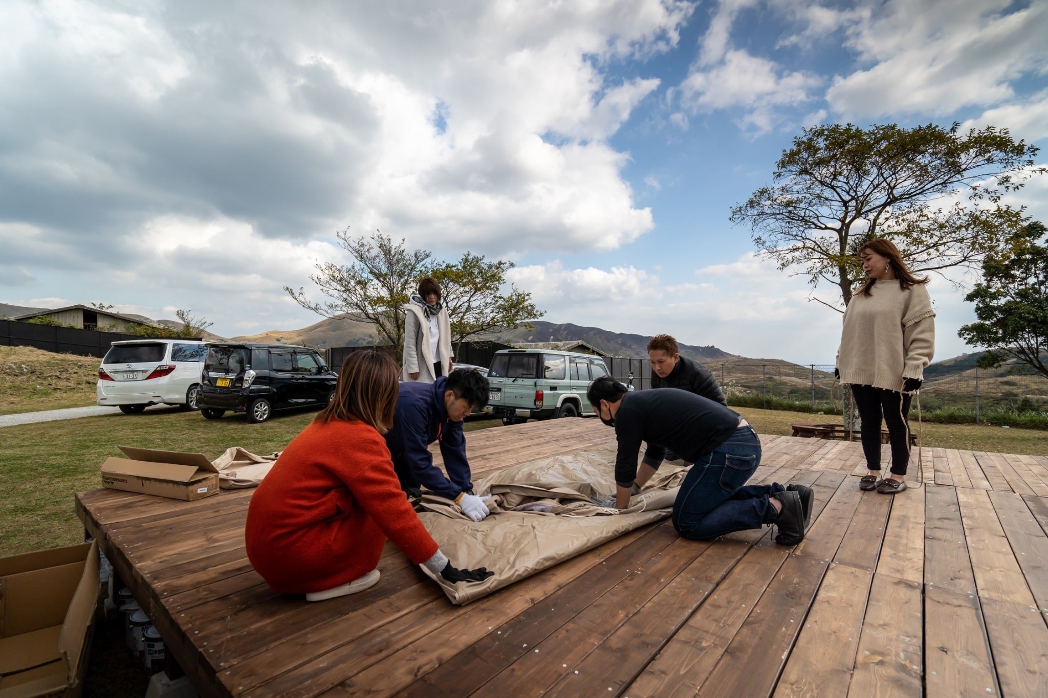 平尾台は国定公園であり規制も多く 滞在型観光が出来なかった状況でしたが、観光地として、グランピング という新しい文化を作る為、そして日本一のグランピングを作ることを目標に掲げ、FCKのチームメンバーと深夜まで熱く語り、アイデアをぶつけ合い本当に楽しい施設と観光地に変貌する為に必死に活動しております。