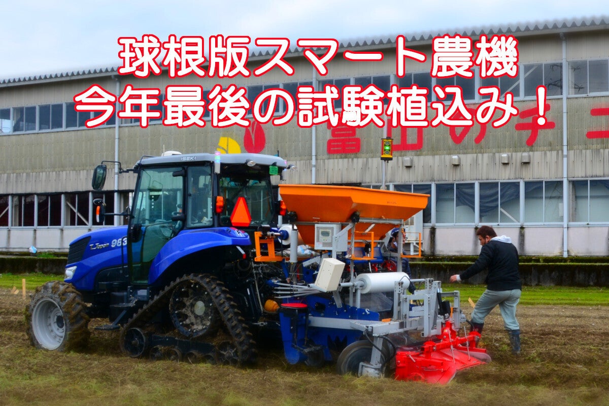 富山は昨日今日と天気が良く、現在開発中の球根版スマート農機で、今年最後の植付を行いました!