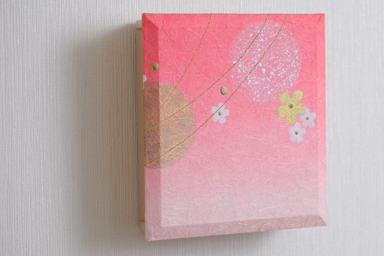 そのデザインをもとに雛人形の屏風の絵付けの工程である金彩加技術を駆使し、職人が一枚ごと絵付けしてあります。