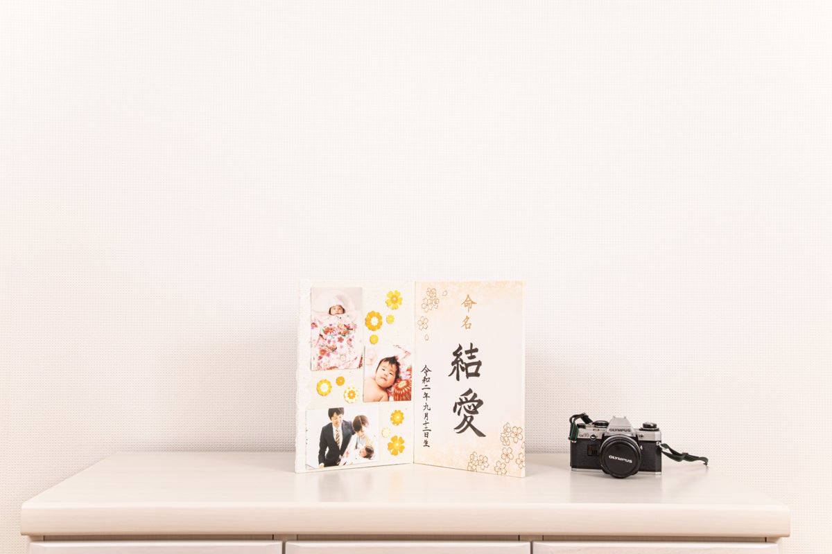 便利さだけではなく命名用紙やお祝いの言葉を書ける右面は、本格的な屏風の製法で作られています。