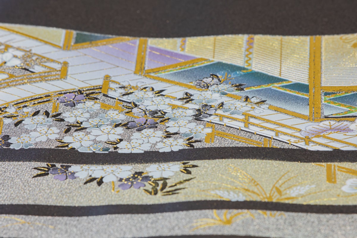 時代が流れるとともに、金屏風の売れ行きが落ちつき、枠屏風や金紙に金彩加工で絵付けが施された本仕立屏風も作るようになりました。