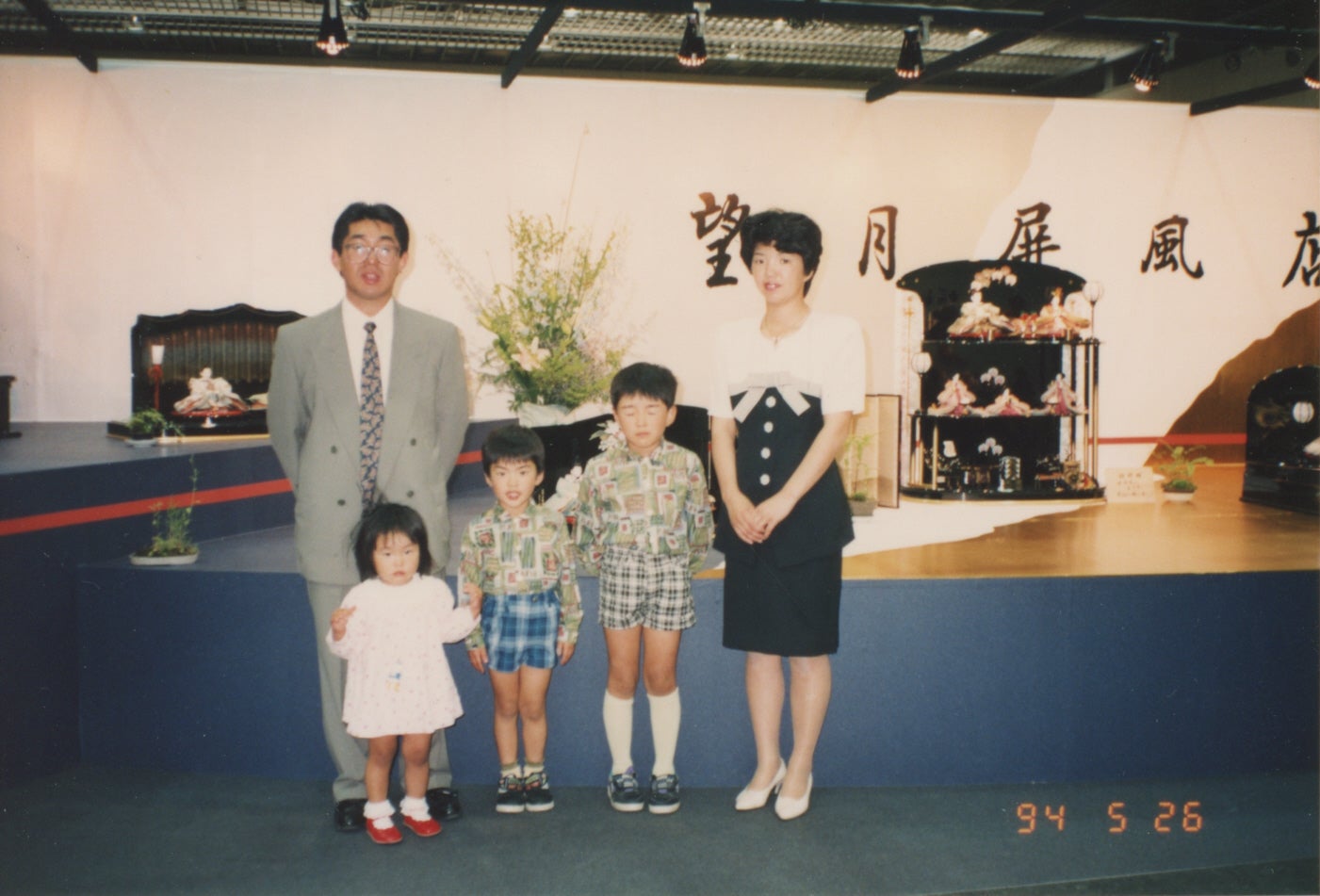 二代目望月篤と家族 (四代目望月悠 2歳の時)現在は三代目の父を中心に、家族と工場の従業員の協力のもと雛人形、五月飾りの屏風の製造にこだわりを持って作り続けています。