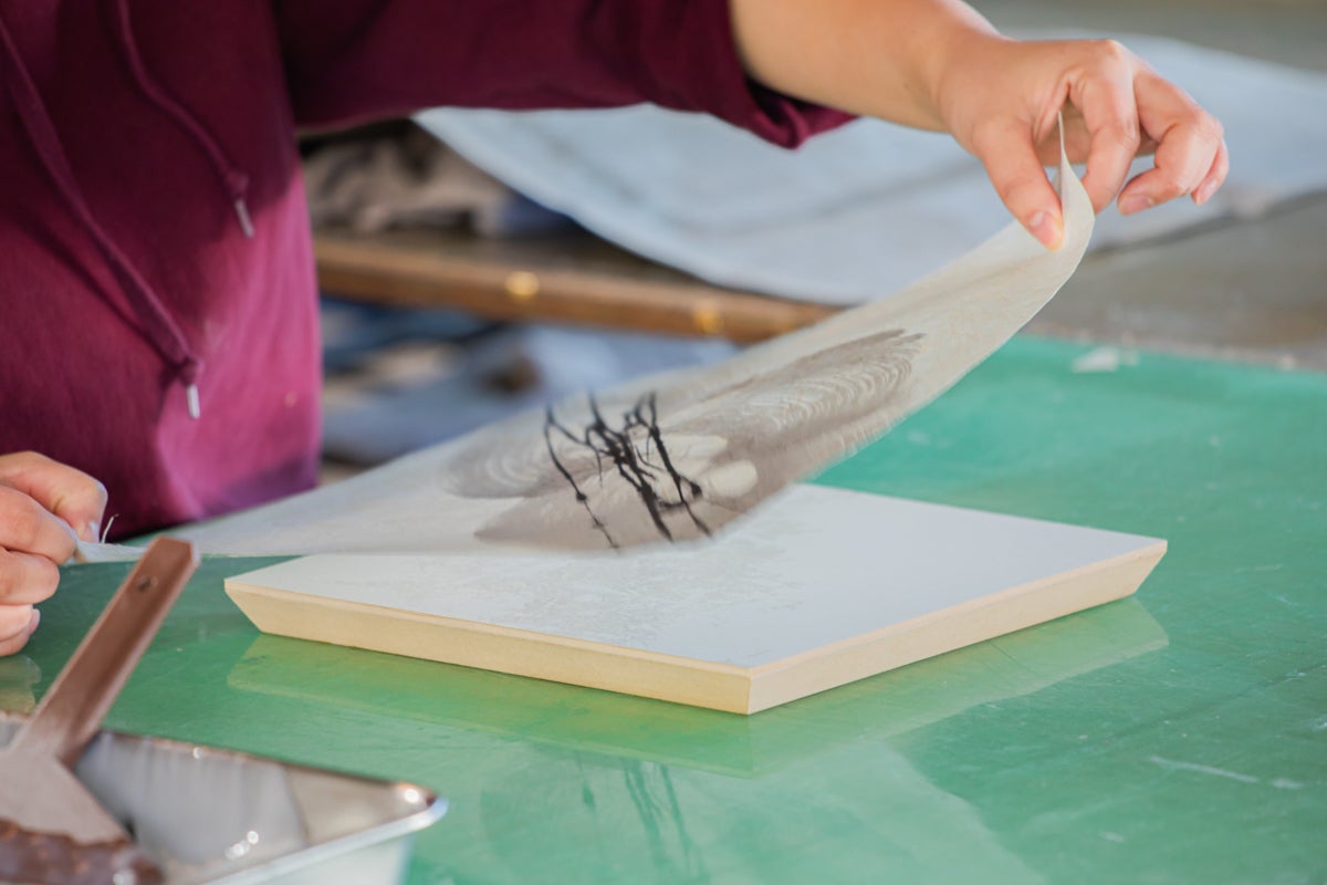 屏風製造の工程の中で麻和紙を貼るときに、麻和紙の繊維の透け感がきれいに映えてまた違った和紙の表情に面白さを感じた義理姉は、和紙にも共通する部分があるのではないかと考えました。