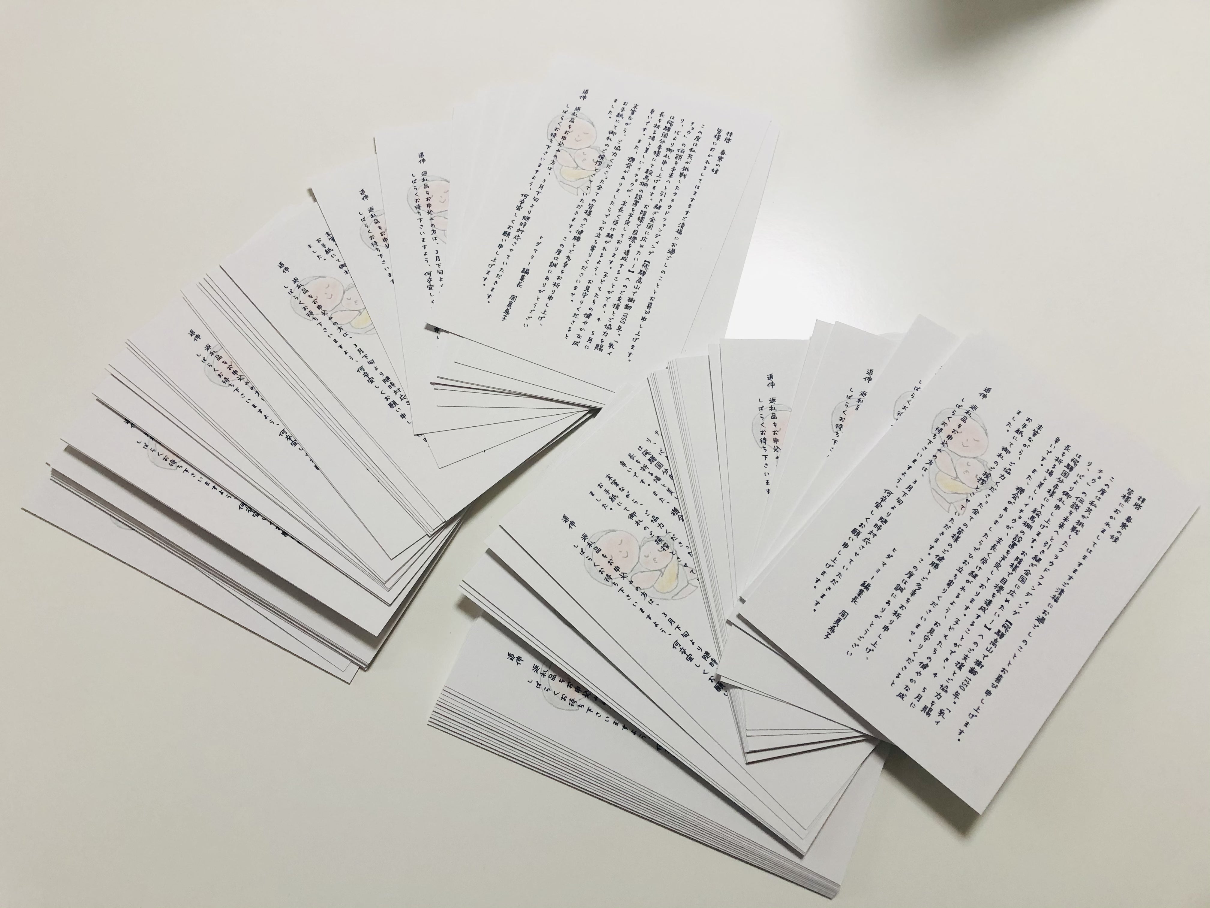 葉書を準備しながら、こんなにもたくさんの方からご支援いただけたのかと改めて実感し、感謝の気持ちが溢れました。本当にありがとうございます!!