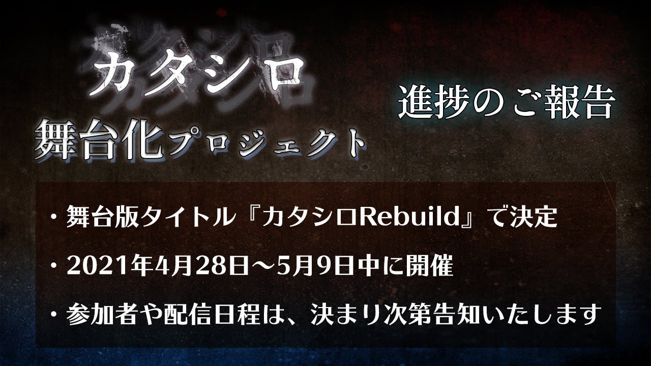 わんばんこ!ディズムです!!しまどりる企画室でお話していた、楽曲制作について進展がございました!K'sさん、藍月なくるさん、コーサカさんという心強い制作陣に、“カタシロRebuild”のテーマ曲を制作していただきます!!!!いええええええい!!!!!ただいまコーサカさんが主体となって動いてくれているのですが、メッチャ頼りになる。カタシロを知っている人に、楽曲制作に携わっていただけるという贅沢。そしてK'sさんが制作してくださったプリプロ(事前準備、仮録音ってやつらしい初めて知った)、メッチャ登場人物の心に寄り添う。ここに藍月なくるさんが合わさって、ディズムの思う最強の楽曲制作陣が揃っております。全てご支援くださったみなさんのおかげです。本当にありがとうございます!!どんな曲が、どこで流れるのか。ご期待ください。