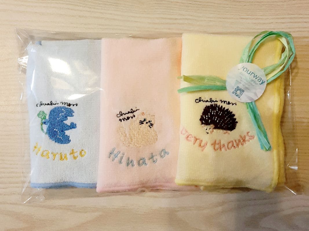 名入れする場合は刺繡の字体にも注目しましょう。子供に贈る場合は、ひらがなやカタカナなど読みやすい字体が向いています。もちろん、名入れ無しも可能です。