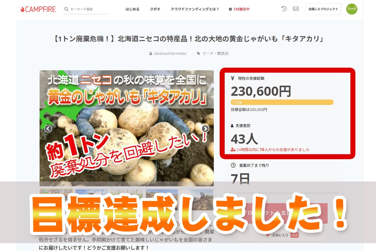 プロジェクト開始から3日目にして、目標としていた支援金額を達成いたしました!