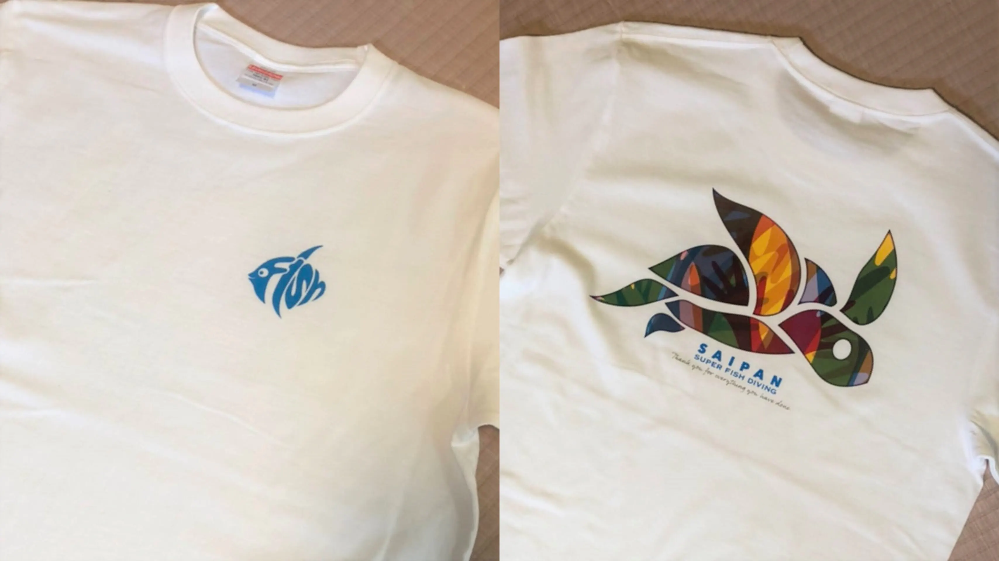 2021/03/01 13:24こんにちは!サイパンよりスーパーフィッシュダイビングです。大変お待たせいたしました。今回のファンディグ専用のTシャツが出来上がってまいりました。サイパンの海で良く見られるウミガメをモチーフに、南国らしい柄の中に、みなさまの手で支えられているイメージになっております。ステキなTシャツが出来上がりました♪ツアーチケットも同じく作成出来ましたので、郵送準備に入らせて頂きます。お待たせして申し訳ございませんが準備でき次第、順次お送りさせて頂きます。もうしばらくお時間を頂きますが、到着を楽しみにお待ちください。引き続きどうぞよろしくお願いいたします。 もっと見る