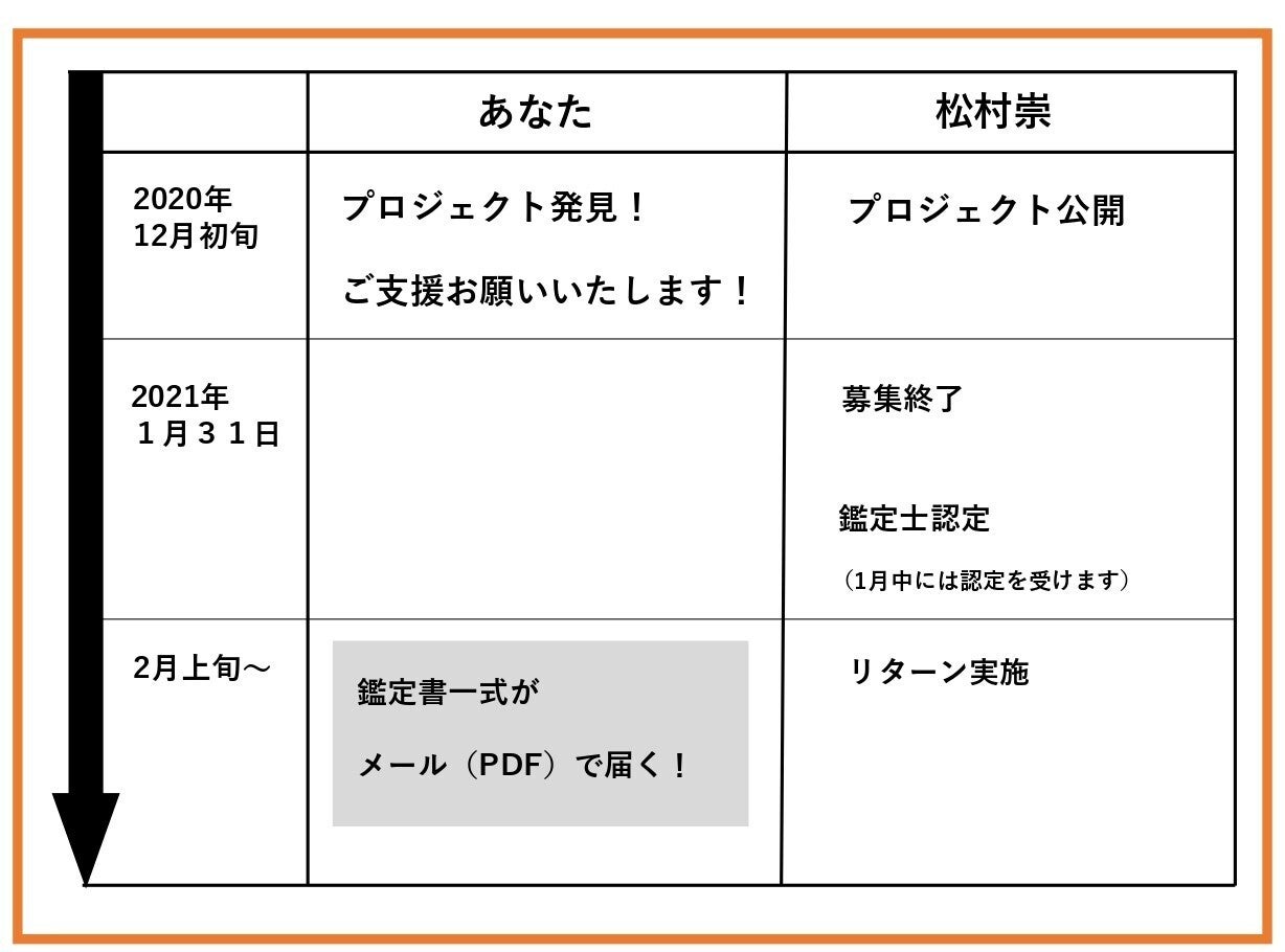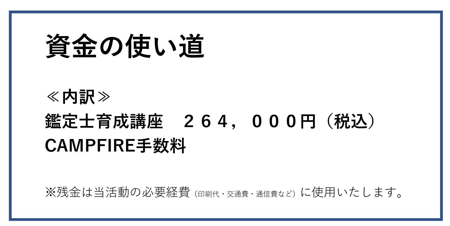 先にも記載しましたが、本クラウドファンディングにて多くの方のご支援をいただくことで、鑑定経験値を向上させ、制度を高め、より的確なアドバイスができる鑑定士になって、『世のため人のため』に人生を精進して参りたいと思っています。