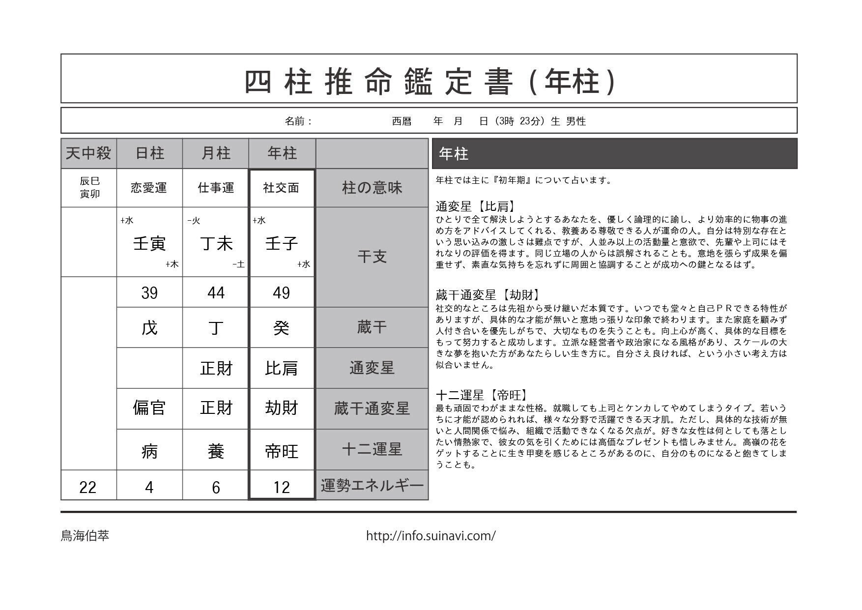 ※ベーシック鑑定ではありますが、大筋の運命が分かります。おススメです。
