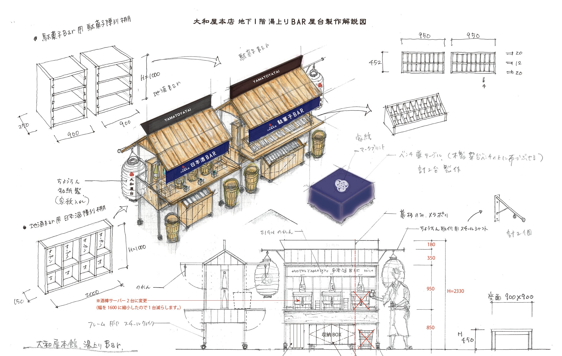 GoToが終わってもお客様に「大和屋本店に行ってみたい!!」と思って頂けるよう、大和屋本店の新たな1つの魅力となるような『屋台』を館内に創りたく、このプロジェクトを企画しました!