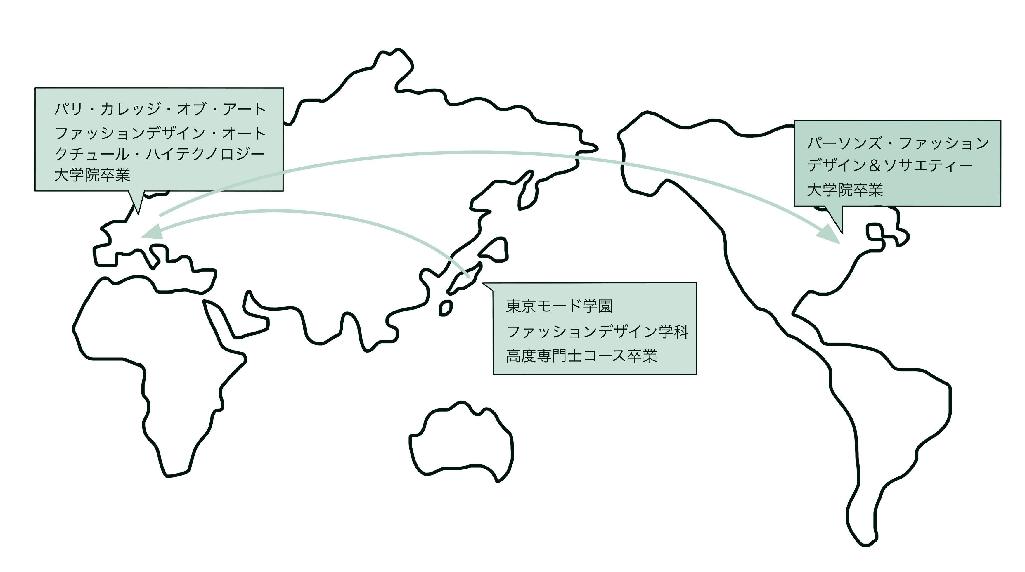 東京モード学園ファッションデザイン学科高度専門士コースを卒業後、パリとニューヨークのファッション大学院へ通いました。